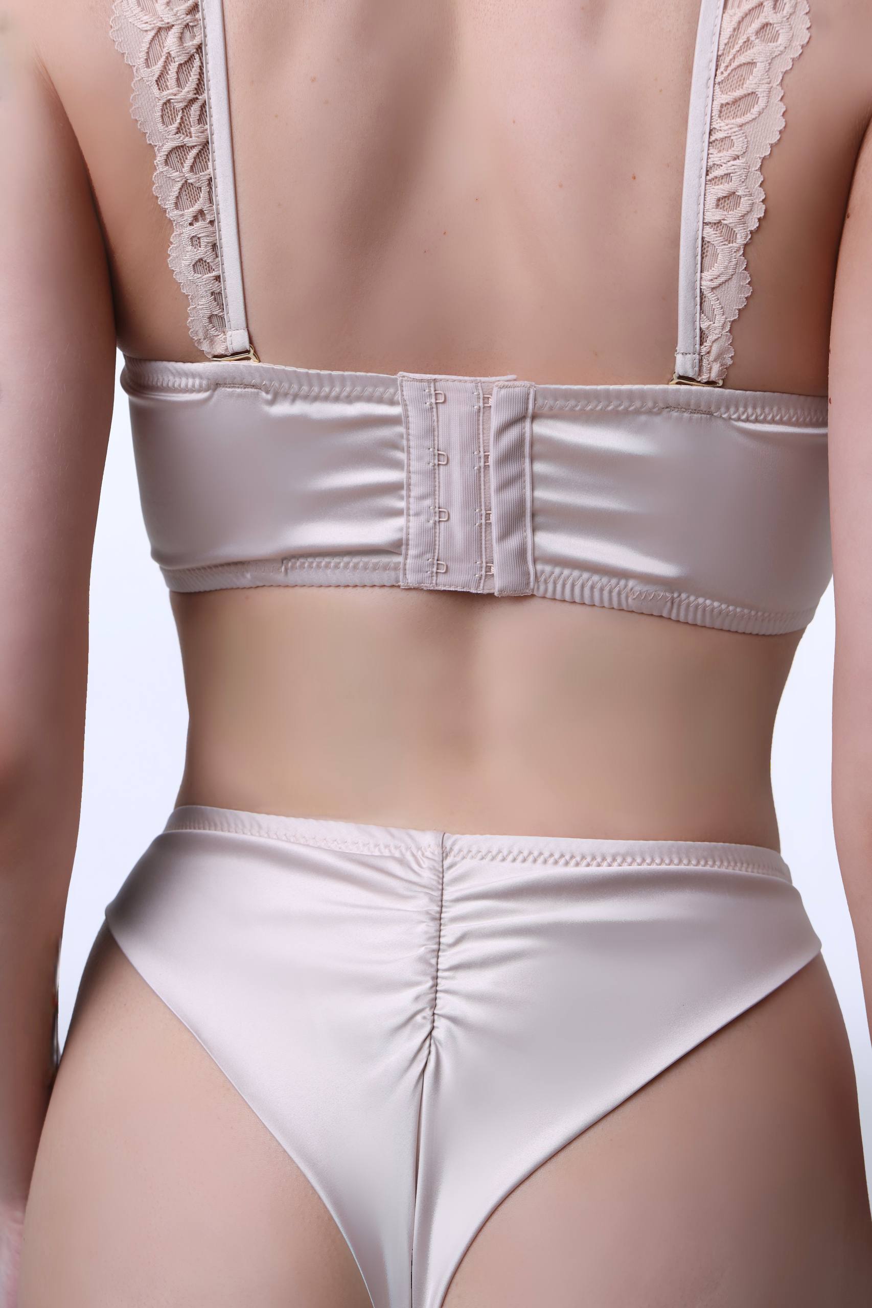 Бюстгальтер из атласной ткани, с широкими регулирующимися лямками. Мягие чашечки, идеально подчеркивающие форму.